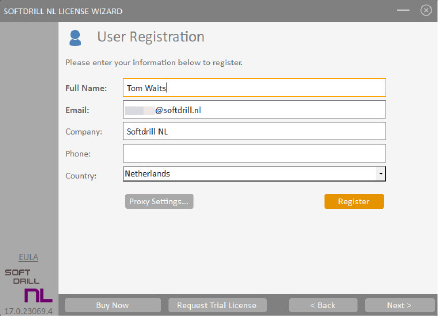 Please provide some information to register for a trial license.  As a minimum we will need your full name and the email address to which you want to register the trial license. The other data is optional and may be left blank.